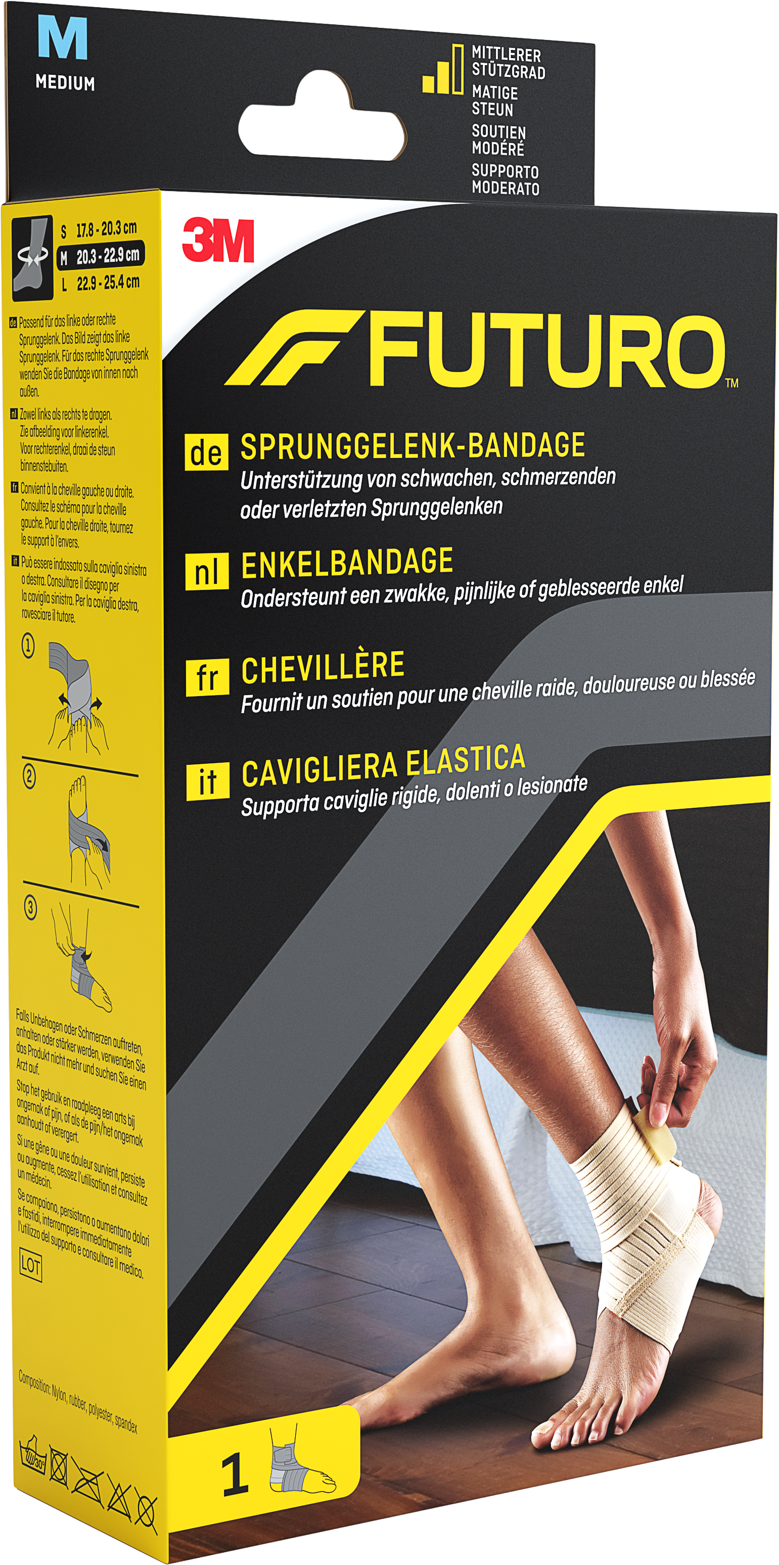 Vyskúšajte tiež ostatné produkty značky 3M Futuro, ktoré nájdete v kategóriách Šport, Zdravotnícky materiál a Ortopedické pomôcky. 3M Futuro Stabilizačná bandáž na členok, veľkosť M, stredná opora je registrovaný v databáze ŠUKL pod kódom P87674. Ak si nie ste istí výberom tohto produktu, inšpirujte sa v kategórii Ortézy na členok.