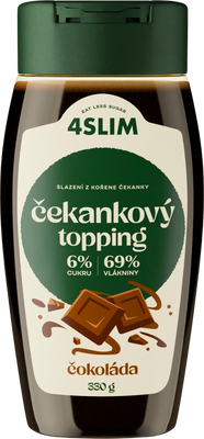Čakankový topping 4slim, to je sladká hustá Low Carb poleva, ktorá sa môže pochváliť nízkym obsahom cukru a tuku na rozdiel od iných toppingov. Je úplne bez lepku, bez laktózy, bez konzervantov, bez soli, s vysokým obsahom vlákniny. Viac informácií