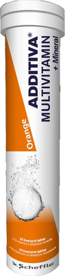 Additiva Multivitamín + Minerál, orange 20 šumivých tablietVšetko o produkteDoplňujúce informácieHodnotenie produktuŠumivé tablety s príchuťou pomaranča obsahujú zmes 10 navzájom sa dopĺňajúcich vitamínov a minerálov. Vitamín C, vitamín B6 a vitamín B12 prispievajú k: správnej funkcii psychiky, správnemu fungovaniu imunitného systému a zníženiu vyčerpania a únavy. Niacín prispieva k správnej látkovej premene dôležitej pre tvorbu energie, k správnemu fungovaniu nervového systému a k udržaniu zdravej pokožky.