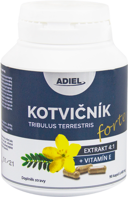 - ADIEL Kotvičník zemný FORTE s vitamínom E 90 kapsúl zodpovedá približne mesačnej kúre.