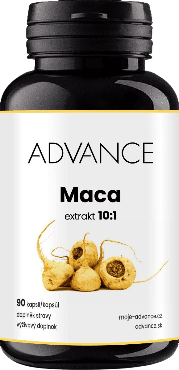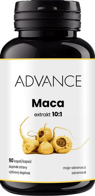 Maca ADVANCE obsahuje vysoko koncentrovaný extrakt 10:1 z koreňa žeruchy peruánskej známej ako maca (Lepidium meyenii). Vďaka tomu sú biologicky aktívne látky nachádzajúce sa v doplnku v 10-krát vyššej koncentrácii než v samotnom koreni maca.