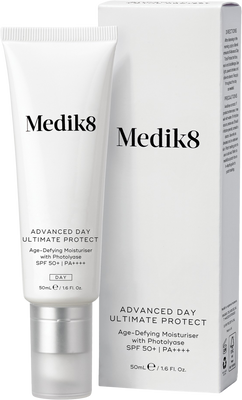 Absolútna ochrana pre vašu pleť, maximálna starostlivosť a hydratácia, to je denný výživný krém Advanced Day Ultimate Protect od Medik8 s SPF 50, PA ++++ a obalenou fotolyázou na opravu poškodenia pleti. Na pleti ho ani neucítite, napriek tomu jej poskytne maximálnu podporu a starostlivosť. Viac informácií
