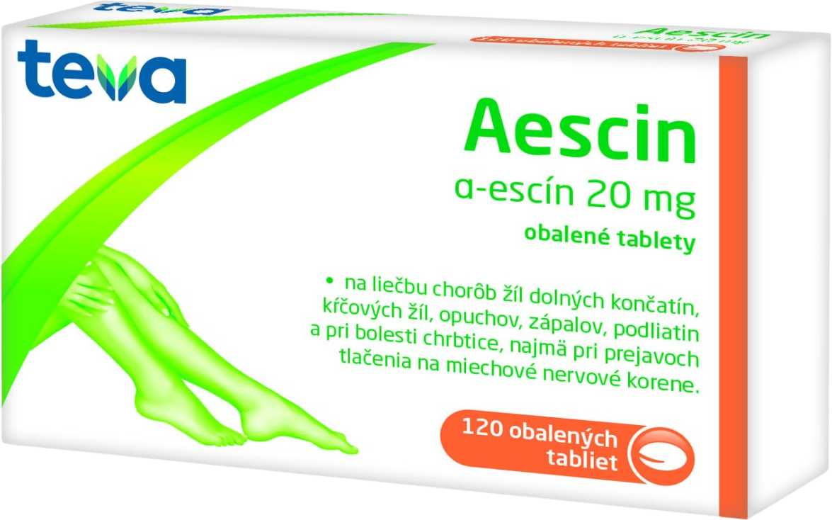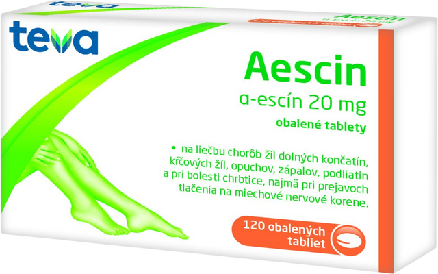 Pozrite tiež ďalšie výrobky značky Aescin, ktoré nájdete v kategóriách Kŕčové žily, Srdce a cievy a Zdravie a lieky. Aescin Teva 20 mg 120 tabliet je registrovaný v databáze ŠUKL pod kódom 2374E. Ak si nie ste istí výberom tohto produktu, inšpirujte sa v kategórii Kŕčové žily.