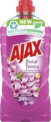 Ajax Floral Fiesta univerzálny čistič, Lilac 1 lVšetko o produkteDoplňujúce informácieHodnotenie produktuBrilantne čistý hĺbkový čistiaci prostriedok Ajax, ktorý zanecháva povrchy žiarivo čisté bez oplachovania. pH neutrálne je šetrný k jemným povrchom (mramor, keramika). Používajte na podlahy v celej domácnosti, na povrchy v kuchyni, kúpeľni atď.