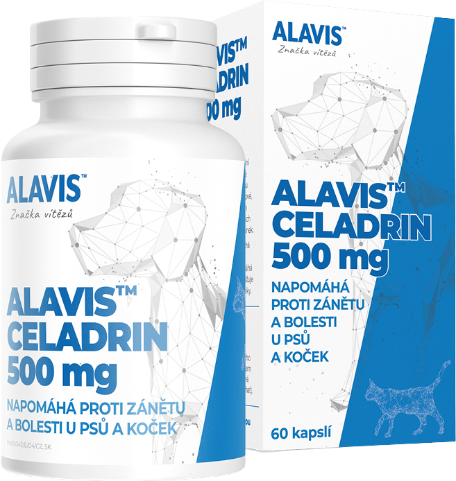 Proti zápalu a bolesti pre psy a mačky. Patentovo chránená zmes Celadrin obsahuje derivát cetylu a zmes nasýtených a nenasýtených mastných kyselín, najmä kyseliny myristovej, myristoolejovej a palmitovej, ktoré inhibujú enzým 5 – lipooxiogenázu podporujúcu oxidatívne a zápalové procesy.