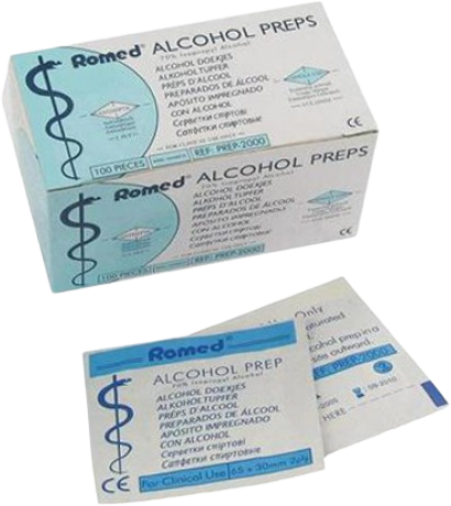 Tampóny pre jednorázovú dezinfekciu kože pred injekciou. Balenie Alcohol Preps obsahuje 100 individuálne zatavených zvlhčených tampónov z netkaného textilu o rozmeroch 65x30 mm. Každý tampón obsahuje 0,5 ml Isopropanolu (70 % V/V). Viac informácií