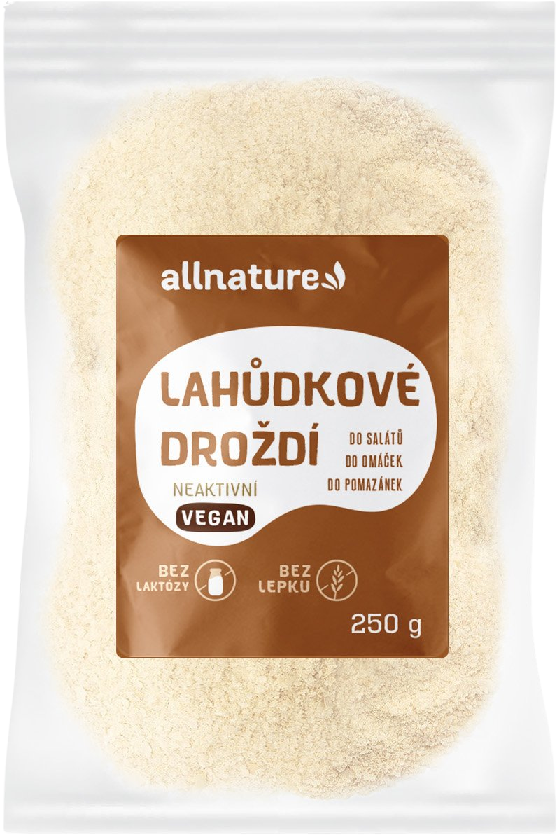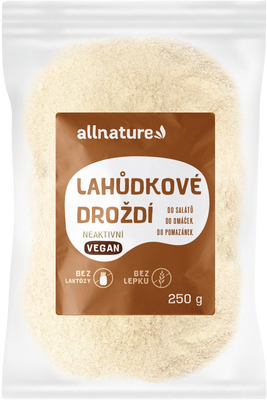 Allnature Lahôdkové droždie neaktívne 250 gVšetko o produkteDoplňujúce informácieHodnotenie produktuIde o úplne iný produkt, než sú bežné kvasnice, pretože s neaktívnym droždím vám cesto nikdy nevykysne. Za to majú lahôdkové kvasnice mnoho iných predností – a áno, naozaj skvele chutia! Sú totiž ľahko sladkasté a slúžia na dochucovanie nielen v kuchyni vegánov a vegetariánov. Ak ste na takej strave, môžete trpieť nedostatkom vitamínov z radu B, ktoré neaktívne droždie obsahuje, rovnako ako folát, glutatión, zinok, selén a betaglukány. Ide teda o cennú superpotravinu, ktorá je navyše prirodzene bezlepková a bezlaktózová. Dochucovanie pokrmov lahôdkovým droždím jednoducho prospieva komplexne celému nášmu telu a navyše vďaka nekvasiacemu účinku nie je náročné pre našu črevnú mikroflóru.