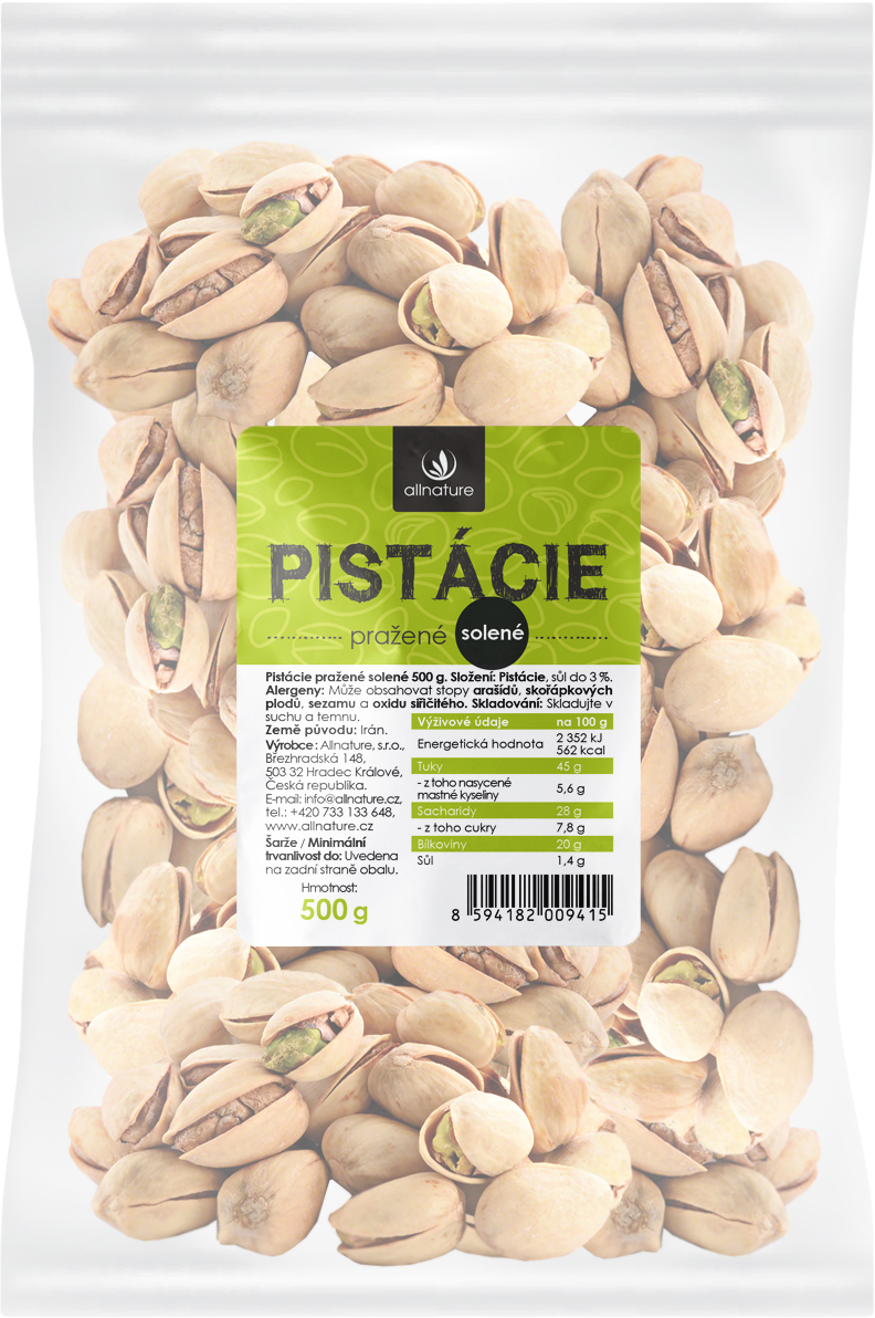Obsahujú zdravé tuky, vitamíny a minerálne látky, ako je napríklad draslík, zinok, vápnik alebo selén. Ďalej pistácie obsahujú okolo 20 % bielkovín. Hodia sa preto aj ako rýchla pochúťka počas športových aktivít. Kvalitné solené pistácie spoznáte na prvý pohľad vďaka hladkej okrovohnedej škrupine bez akýchkoľvek výrazných fľakov. Samotný orech by mal mať jasnozelenú farbu.