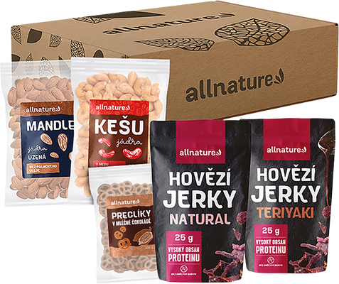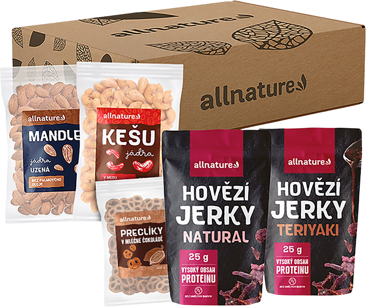 - Allnature BEEF Natural Jerky 25 g – čistá chuť kvalitného hovädzieho mäsa bez pridaných omáčok, pre tých, ktorí uprednostňujú prírodnú desiatu