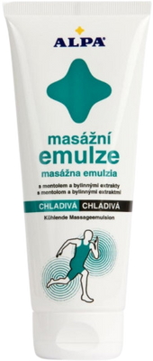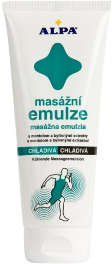Alpa Masážna emulzia chladivá s mentolom 210 mlVšetko o produkteDoplňujúce informácieHodnotenie produktuBylinné extrakty a mentol pomáhajú prekrviť pokožku, uvoľniť a regenerovať svaly.