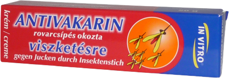 - Krém ANTIVAKARIN sa používa na utíšenie bolestivého svrbenia spôsobeného uštipnutím hmyzom (komár, včela, osa, pavúk), dotykom medúzy, žihľavy ako aj na alergiu spôsobenú slnečným žiarením.