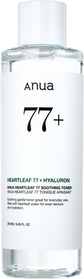 Anua Heartleaf 77% Soothing Toner Upokojujúce pleťové tonikum 250 mlVšetko o produkteDoplňujúce informácieHodnotenie produktuObjavte silu kórejskej starostlivosti s týmto výnimočným upokojujúcim tonikom obsahujúcim 77% extraktu zo srdcovky (Houttuynia Cordata). Tento prírodný extrakt je známy svojimi protizápalovými a upokojujúcimi vlastnosťami, ktoré pomáhajú redukovať podráždenie a začervenanie citlivej pleti.