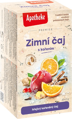 Apotheke Premier selection Zimný čaj s korením 20 x 2 gVšetko o produkteDoplňujúce informácieHodnotenie produktuČaj je výborný nielen v zime na zahriatie, ale aj v lete ich možno po vychladení použiť ako osviežujúci nápoj. Vychutnajte si príjemné chvíle strávené pri šálke lahodného čaju. Extra silná chuť a výrazná vôňa.