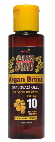 Arganový olej je prírodný všestranný produkt starostlivosti o pokožku, ktorý je zároveň vhodný aj na opaľovanie. Zosvetľuje tmavé škvrny spôsobené slnkom, ale funguje aj ako opaľovací krém, ktorý chráni pred UV žiarením. To pomáha predchádzať poškodeniu kolagénu a pokožky v dôsledku predčasného starnutia. Arganový olej je bohatý na jeden z najsilnejších antioxidantov - vitamín E, ktorý tvorí značnú časť oleja. Vďaka svojim prírodným antioxidantom a flavonoidom, arganový olej preukázal výnimočnú účinnosť v boji proti dopadom voľných radikálov (malé častice, ktoré útočia na dôležité štruktúry organizmu a vznikajú napríklad UV žiarením). Podporuje tvorbu melanínu a pomáha pri ostraňovaní odumretých vrstiev pokožky, ktoré zakrývajú jej prirodzený jas. Vďaka tomu dosiahnete s arganovým olejom bezkonkurenčné opálenie počas kratšej doby vystavenia sa slnku. Ľahko sa nanáša, vstrebáva a nezanecháva pokožku mastnú alebo podráždenú. Skvelá starostlivosť o tvár aj telo.