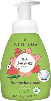 Attitude Little Leaves detské penivé mydlo na ruky s vôňou melóna a kokosu 295 mlVšetko o produkteDoplňujúce informácieHodnotenie produktuMydlo na ruky ATTITUDE je obohatené o výťažky z listov čučoriedok a semien moringy