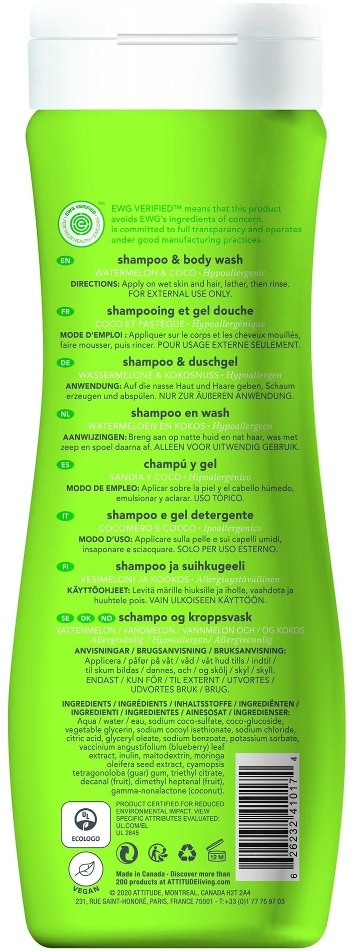 Attitude Detské telové mydlo a šampón (2v1) s vôňou Melónu a Kokosu Little leaves 473 mlVšetko o produkteDoplňujúce informácieHodnotenie produktuŠampón a telové mydlo Attitude je obohatené o výťažky z listov čučoriedok a semien moringy