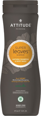 Attitude Pánsky šampón a telové mydlo (2v1) Super Leaves s detoxikačným účinkom, normálne vlasy 473 mlVšetko o produkteDoplňujúce informácieHodnotenie produktuPrírodný, certifikovaný, hypoalergénny a dermatologicky testovaný šampón a telové mydlo s výťažkami zo zelených listov. Nový koncept Super Leaves od ATTITUDE v sebe skrýva koncentrovanú silu prírody.