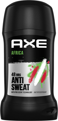 Naneste na podpazušie a nechajte vstrebať. AXE Africa spoľahlivý tuhý antiperspirant pre mužov. Účinne zabraňuje poteniu a jeho neobyčajná vôňa vás urobí neodolateľným. Nedovoľte už, aby vám otravné koláče v podpazuší ničili štýl! Nebojte sa ozvať! Tento tuhý dezodorant AXE