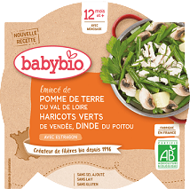 Babybio menu zemiaky a fazuľky s Morčacie plátky 230g. Od ukončeného 12. mesiaca, francúzske morčacie mäso, francúzska petržlen. Viac informácií
