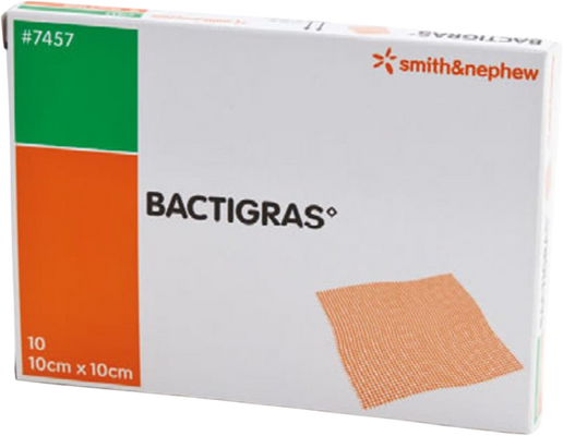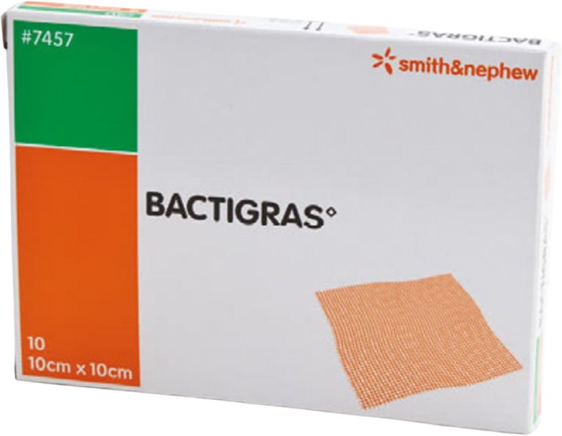 Bactigras Krytie na rany 10 x 10 cm, antiseptické tylové krytie s chlórhexidín acetátom 10 ksVšetko o produkteDoplňujúce informácieHodnotenie produktuBACTIGRAS je gáza z tylovej tkaniny impregnovaná jemným bielym parafínom s obsahom 0,5% chlórhexidín acetátu. Je jemný, nepriľnavý a umožňuje voľnú pasáž exsudátu. Chlorhexidín je osvečené antiseptikum, ktoré sa z krytia pomaly uvoľňuje do rany a účinne pôsobí proti širokej rade grampozitívnych baktérií a proti niektorým gramnegatívnym baktériám, vrátane MRSA.