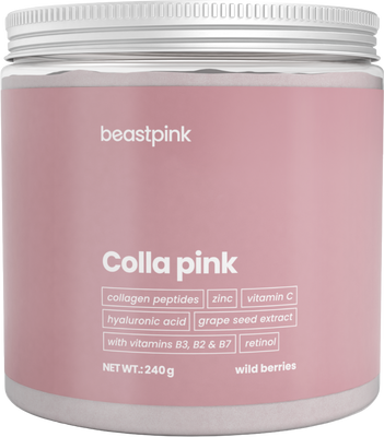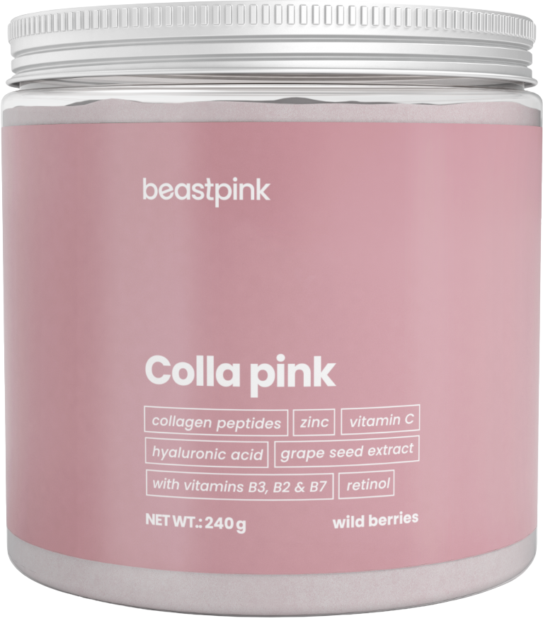 Colla Pink je jedinečný beauty nápoj bez cukru a tukov, vyrobený špeciálne pre ženy. Vďaka unikátnemu spojeniu prémiového kolagénu, kyseliny hyalurónovej, extrakt z hroznových jadier, vitamínov a minerálov sa postará o to, aby bola vaša pleť,nechty a vlasy dokonale vyživené. Vitamín C prispeje k správnej tvorbe kolagénu a postará sa aj o imunitný systém. Colla Pink si môžete vychutnať hneď v niekoľkých neodolateľných príchutiach. Vďaka jedinečnému zloženiu a žiadnemu obsahu tukov a cukrov je vhodný aj do diéty! Tento komplexný beauty nápoj nesmie chýbať ani vo vašej beauty & fitness výbave!