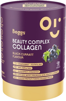 Beggs Beauty and Glow collagen Blackcurrant 30 x 5.8 gVšetko o produkteDoplňujúce informácieHodnotenie produktuBeggs Beauty Complex Collagen je prémiový kolagénový doplnok stravy s jedinečným zložením určený pre tých, ktorí chcú mať krásnu pleť a lesklé vlasy s podporou zvnútra. Každá denná dávka obsahuje 5 000 mg hydrolyzovaného Naticol® rybieho kolagénu, ktorý sa vyznačuje vysokou čistotou a výbornou vstrebateľnosťou. Je obohatený o Ceramosidy™ fytoceramidy, kyselinu hyalurónovú, biotín a zinok. Vitamín C tiež prispieva k normálnej tvorbe kolagénu pre správnu funkciu pokožky, ktorá si zachováva svoju prirodzenú pevnosť a pružnosť. Užívajte 1 vrecúško denne a dodajte svojmu telu vedecky podloženú kombináciu účinných látok, ktoré podporujú krásu a žiarivý vzhľad. To všetko v osviežujúcej príchuti čiernych ríbezlí, vďaka ktorej sa vaša každodenná starostlivosť o krásu stane lahodným a príjemným rituálom.