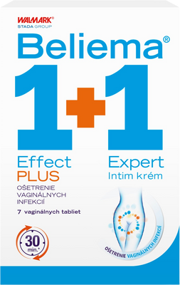 Beliema Effect PLUS je zdravotnícka pomôcka vo forme vaginálnych tabliet, ktorá je určená na liečbu a prevenciu vaginálnych infekcií založená na Cranberry-Active™, kyseline hyaluronovej a laktitol monohydráte. Beliema Expert Intim Krém je šetrný upokojujúci krém na vonkajšie časti intímnych partií. Obsahuje Dermosoft. Neobsahuje parfum ani farbivá. Viac informácií