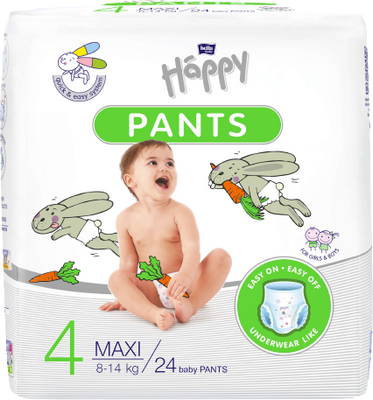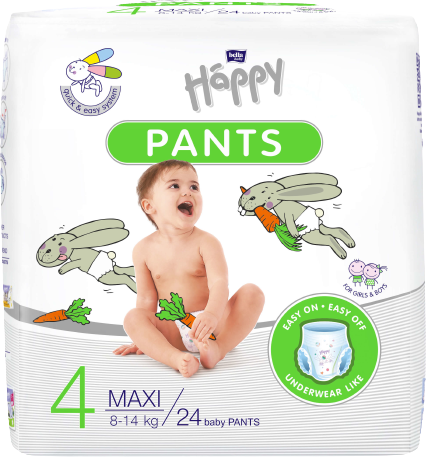 Naťahovacie plienkové nohavičky Happy Pants Maxi sú určené deťom s hmotnosťou 8 - 14 kg a sú novinkou v sortimente značky Bella Baby Happy. Viac informácií