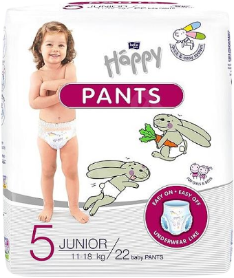 Naťahovacie plienkové nohavičky Bella Happy Pants Junior sú určené deťom s hmotnosťou 11 - 18 kg. Viac informácií