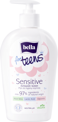 Bella For Teens Sensitive intímny gél 300 mlVšetko o produkteDoplňujúce informácieHodnotenie produktuDievčatá v predpubertálnom veku majú zásadité alebo neutrálne pH intímnej oblasti v dôsledku nízkej hladiny estrogénu a nemali by používať intímne produkty určené pre dospelých. Bella For Teens Sensitive Intimate Gel je špeciálne vyvinutý pre dievčatá s citlivou pokožkou. Vďaka neutrálnemu pH nenarušuje prirodzenú mikroflóru intímnych oblastí a zloženie obohatené o aloe, kyselinu mliečnu a glycerín hydratuje pokožku a pomáha zmierniť podráždenie.