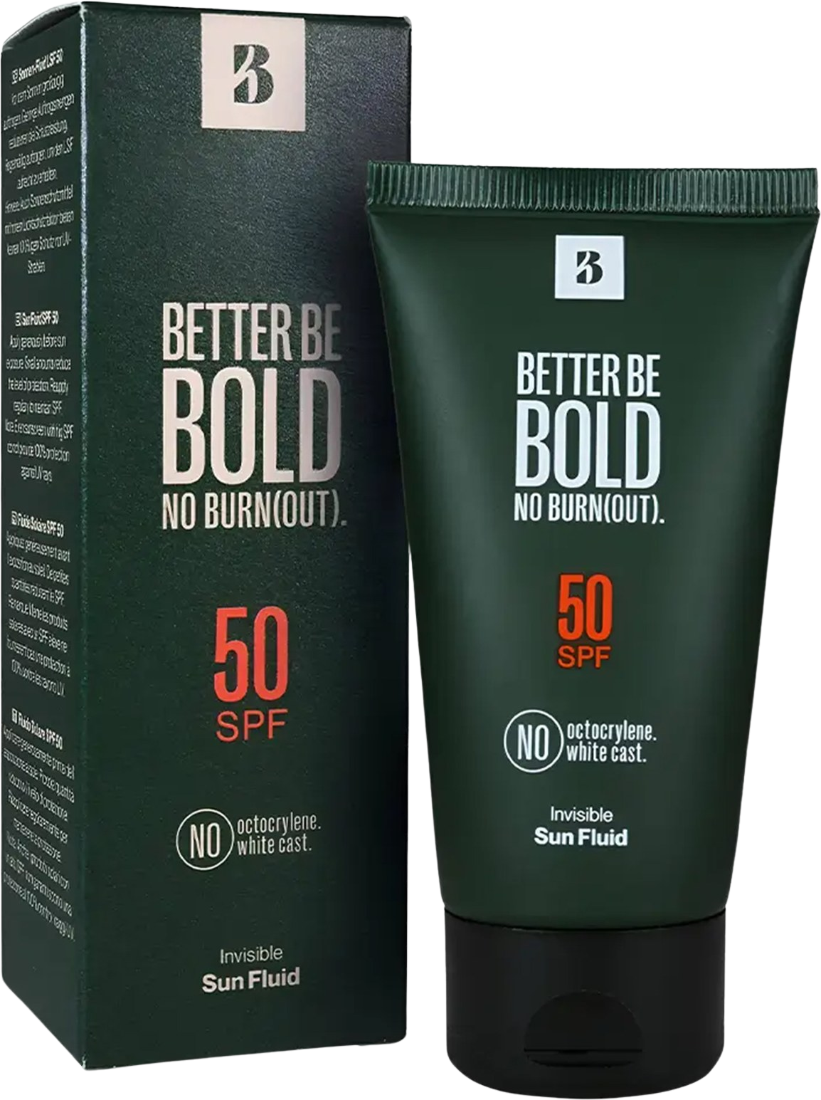 Better be bold Invisible Sun Fluid SPF 50, 50 mlVšetko o produkteDoplňujúce informácieHodnotenie produktuEfektívna ochrana pred UV žiarením vo forme krému na citlivú pokožku hlavy, na ktorú nie sú vhodné bežné opaľovacie krémy.