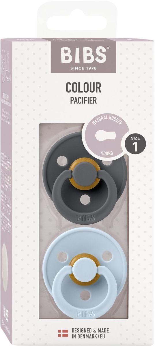 BIBS Colour Cumlíky z prírodného kaučuku - veľkosť 1 Iron/Baby Blue, 2 ksVšetko o produkteDoplňujúce informácieHodnotenie produktuBIBS je obľúbená dánska značka s tradíciou výroby ikonických cumlíkov od roku 1978. Ich minimalistický škandinávsky dizajn, kvalita a široké farebné prevedenie sú pre BIBS cumlíky typické. Okrem jedinečného dizajnu dbá značka BIBS na to, aby boli cumlíky zdravotne nezávadné a napomáhali prirodzenému vývoju detí. Cumlík je extra ľahký.
