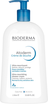 Vlhčiace zložky sprchového krému Atoderm sú dokonale kompatibilné s pokožkou, pomáhajú biologicky obnoviť hydrolipidický film.