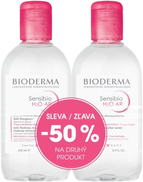 Bioderma Sensibio H2O AR 1+1 Festival 2 x 250 mlVšetko o produkteDoplňujúce informácieHodnotenie produktuTrpí vaša pleť začervenaním alebo rosaceou? Sensibio AR čistiaca micelárna voda obsahuje komplex aktívnych zložiek a jedinečný patent ROSACTIV™, ktorý minimalizuje začervenanie a rozšírené žilky a zabraňuje ich návratu. Navyše upokojuje pokožku a odstraňuje štípanie, pálenie, teplo a pnutie. Sensibio H2O AR spoľahlivo odstraňuje aj vodeodolný make-up, ale zároveň upokojuje a osviežuje pleť vďaka výťažku z uhorky a aloe vera.