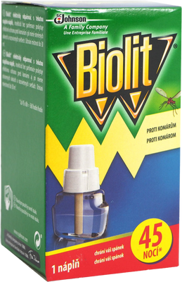 Náhradná kazeta pre elektrický odparovač Biolit. Kazeta zabíja a odpudzuje komáre, pakomáre, pakomáriky a iný drobný hmyz. Viac informácií