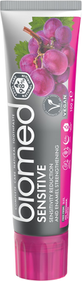 Biomed Sensitive revitalizačná zubná pasta s obsahom prírodného vápnika 100 gVšetko o produkteDoplňujúce informácieHodnotenie produktuOcenia ho všetci, ktorí trpia citlivými zubami, zastáncovia zdravého životného štýlu, rodiny s deťmi hľadajúce produkt s bezpečným zložením a všetci, ktorí milujú hrozno a atmosféru slunkom zaliatych viníc.