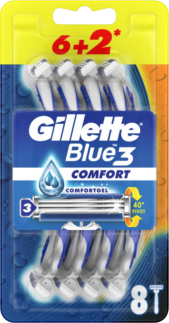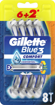 Jednorázový holiaci strojček, s ktorým sa pohodlne oholíte až 10-krát? Holiaci strojček Gillette Blue3 Comfort to umožní vďaka 3 čepieľkam s chrómovou povrchovou úpravou, ktoré sú citlivé k pokožke, a vďaka výkyvnej holiacej hlavici, ktorá sa prispôsobuje kontúram tváre. Viac informácií