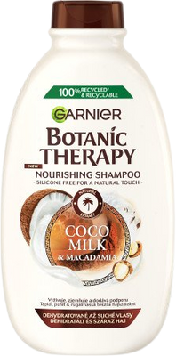 Garnier Botanic Therapy Coco Milk & Macadamia vyživujúci šampon pro dehydratované až suché vlasy 400 mlVšetko o produkteDoplňujúce informácieHodnotenie produktuSpojenie kokosu BIO a makadámiového oleja pre intenzívne vyživené, jemné a hebké vlasy.