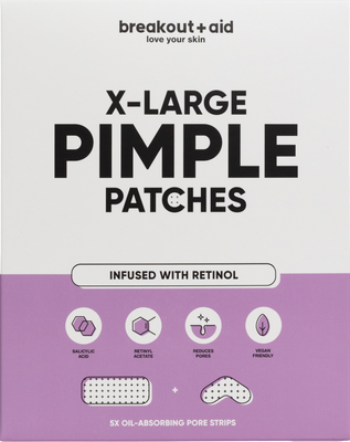 Breakout+aid XL Náplasti na ošetrenie problematickej pleti s kyselinou salicylovou a retinolom 5 ksVšetko o produkteDoplňujúce informácieHodnotenie produktuNáplasti na ošetrenie problematickej a mastnej pleti a upchatých pórov. Súprava obsahuje 5 náplastí, ktoré pokryjú celú tvár. Sú špeciálne vytvarované, aby sedeli na oblasť čela, nosa, brady a tvárí.