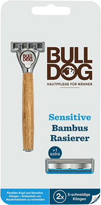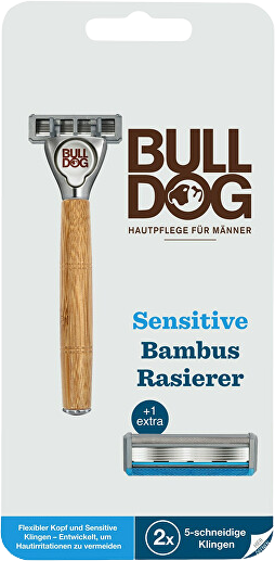 Bulldog Holiaci strojček Bamboo Sensitive + 2 náhradné hlaviceVšetko o produkteDoplňujúce informácieHodnotenie produktuHoliaci strojček Bulldog Original predstavuje ten najjednoduchší spôsob, ako docieliť hladké tváre. Tento holiaci strojček s vymeniteľnými hlavicami ponúka dokonale presné oholenie vďaka piatim čepeliam z tvrdenej ocele, ktoré zachytia aj tie najkratšie fúzy. Citlivá pleť je chránená prúžkom obohateným o vyživujúcu Aloe Vera, ktorá je známa svojou schopnosťou upokojovať podráždenie a hojivými účinkami.