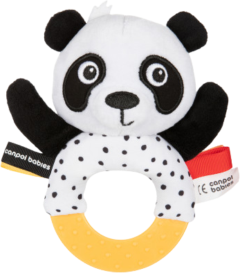Na dotyk príjemný materiál a priateľská tvár pandy so kontrastnými farbami pritahujú pozornosť dieťaťa, stimulujú zmysly a podporujú ich rozvoj – zraku, sluchu a hmatu. Vsadené farebné vešiaky a zŕnka v tlapkách navyše stimulujú zmysly dieťaťa. Senzorický kúsok Canpol Baby BabiesBoo s chrastítkom rozvíja jemnú motoriku (uchopenie a trasenie), aktivuje sluch, zrak a hmat a ako kúsok – prináša úľavu v náročnom období prerastania zubov. Senzorický kúsok Canpol Baby