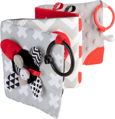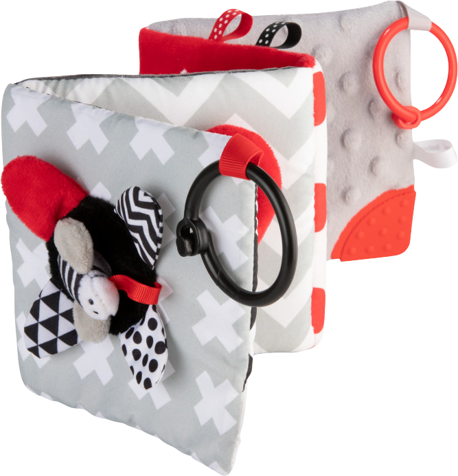 Kontrastná edukatívna knižka je ideálnym pomocníkom pre prvý rok života bábätka. Praktický doplnok disponuje šuštiacimi a pískacími elementmi, zrkadielkom, hrkálkou, hryzátkom a odnímateľnými prvkami. Viac informácií