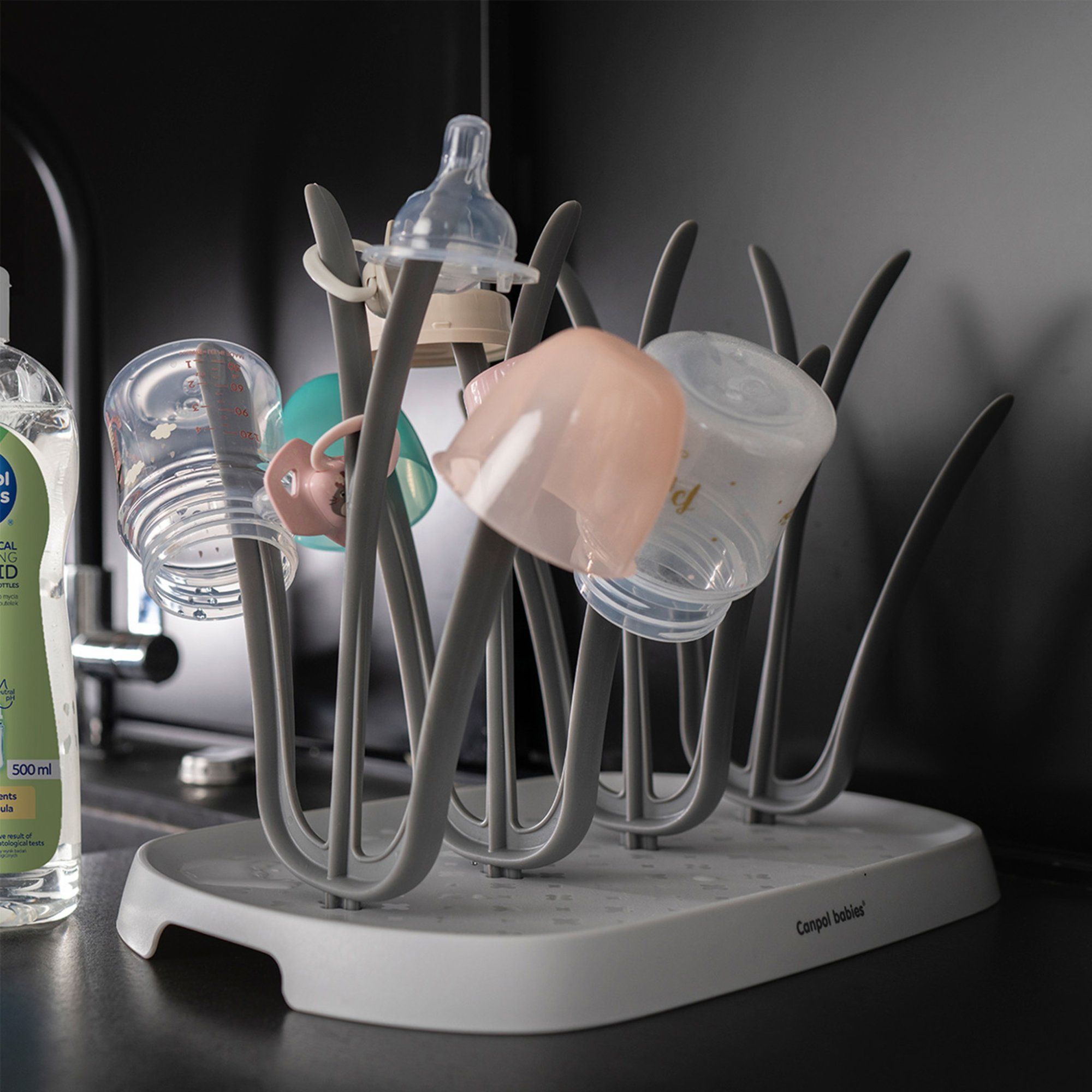Ľahko sa udržiava v čistote. Možno umývať v umývačke riadu. Umyté fľaše, cumlíky a ďalšie príslušenstvo umiestnite na stojan podľa obrázka.