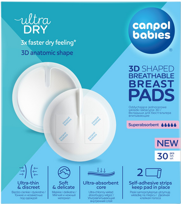 Canpol babies Tvarované priedušné tampóny do podprsenky 3D 30 ksVšetko o produkteDoplňujúce informácieHodnotenie produktuJednorazové prsné tampóny do podprsenky od Canpol babies obsahujú špeciálnu vrstvu, ktorá premieňa tekutinu na gél, vďaka čomu eliminujú riziko pretečenia. Majú lepiaci pásik, ktorý pomáha udržať tampón na mieste. Prsné tampóny do podprsenky ocenia nielen dojčiace mamičky, ale aj ženy v neskoršej fáze tehotenstva. Vďaka mäkkej absorpčnej vrstve, ktorá účinne zadržiava vytekajúce mlieko, nedochádza k nechcenému ušpineniu vašej bielizne.