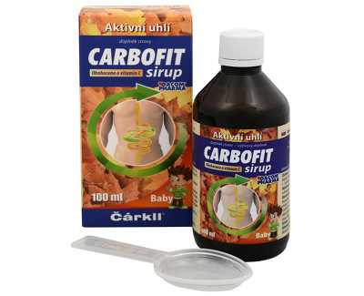 - 1 dávka (2,5 ml) obsahuje aktívne rastlinné uhlie 100 mg, vitamín C 20 mg