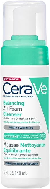 - CERAVE čistiaca pena na optimálne pH pre normálnu až zmiešanú pleť s 3 esenciálnymi ceramidmi a alantoínom
