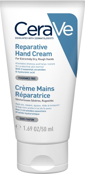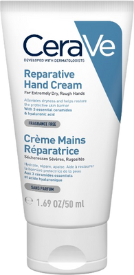 CeraVe Obnovujúci krém na ruky na suchú pokožku 50 mlVšetko o produkteDoplňujúce informácieHodnotenie produktuS obsahom ceramidov a kyseliny hyalurónovej. Bez parfumácie. Vodoodolný.