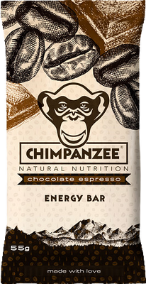 Chimpanzee Energy Bar Chocolate Espresso v novej receptúre bez palmového tuku a ochucovacej pasty! Užite si skutočnú chuť kávy a čokolády bez zbytočných trikov. Čisto prírodná energia pre každý deň! Viac informácií