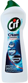 Cif krém Original so 100% prírodnými čistiacimi. Krém úplne odstraňuje bez poškodenia najodolnejšie nečistoty, ako je pripálený tuk, pripálené zvyšky jedla, alebo škvrny od vodného kameňa.