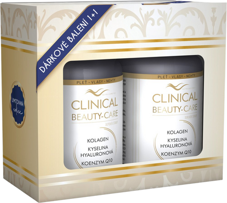 Clinical Beauty-Care Kolagén + kyselina hyaluronová + koenzým Q10 2 x 60 tabletVšetko o produkteDoplňujúce informácieHodnotenie produktuDoplnková výživa obsahujúca 100 % prírodný morský kolagén typu I v hydrolyzovanej forme, ktorá je pre telo prístupnejšia. Obsahuje tiež biotín, selén a zinok, ktoré prispievajú k udržaniu normálneho stavu vlasov, pokožky a nechtov. Komplex obsahuje aj kyselinu pantoténovú a kremík.
